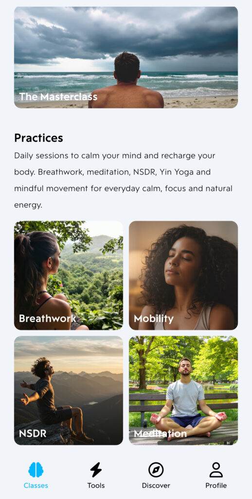 Dagelijkse begeleiding met korte practices om rust, focus en gedragsverandering te integreren in je leven.